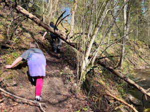Augšup, lejup kāpieni mijas viens aiz otra, tā vien liekas, ka esam atgriezušies savā pirmajā pārgājienā ar @streelnieks Raunis stāvajos krastos, kad muskuļi smeldz, bet kāpumi un kritumi nemaz netaisās rimties. Jā, Nigras (arī saukta Labzna vai Blomupe) krasti nav tik augsti kā Raunim vai Braslai, bet, ja pārgājieni nav tava ikdiena, ir ko just. Īsti vēl neesam iejutušies takas ritmā, kad jau pār muguru noritējusī sviedru lāsīte un pavasara saule, viltīgi smaidot, iebaksta vaigā, sak "vai tad karsti nemaz nav?" Te nu atspēlējas mājās palikusī mugursoma, kurā daudzo gājēju jakas un svīteri sagultu nemanīti, bet nu katram jādomā, kā tikt galā ar nepieradināmām piedurknēm, kas tā vien tiecas pieskarties pie kādas dubļu pikas vai aizķert nolūzuša zara spuraino šperģi.